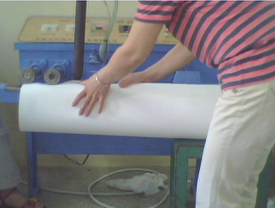 1、中縫熱風(fēng)焊接:可以無(wú)限長(zhǎng)度的將無(wú)紡布卷料焊接成桶狀。