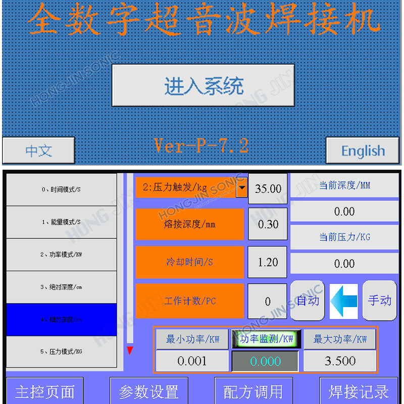 11 焊接參數(shù)調(diào)用功能:可把每個(gè)模具焊接產(chǎn)品時(shí)的最佳參數(shù)組儲(chǔ)存到對應(yīng)的編號(hào),下次使用時(shí)可直接選擇儲(chǔ)存有參數(shù)的編號(hào)使用,各個(gè)部分參數(shù)即可恢復(fù)儲(chǔ)存時(shí)的參數(shù)。