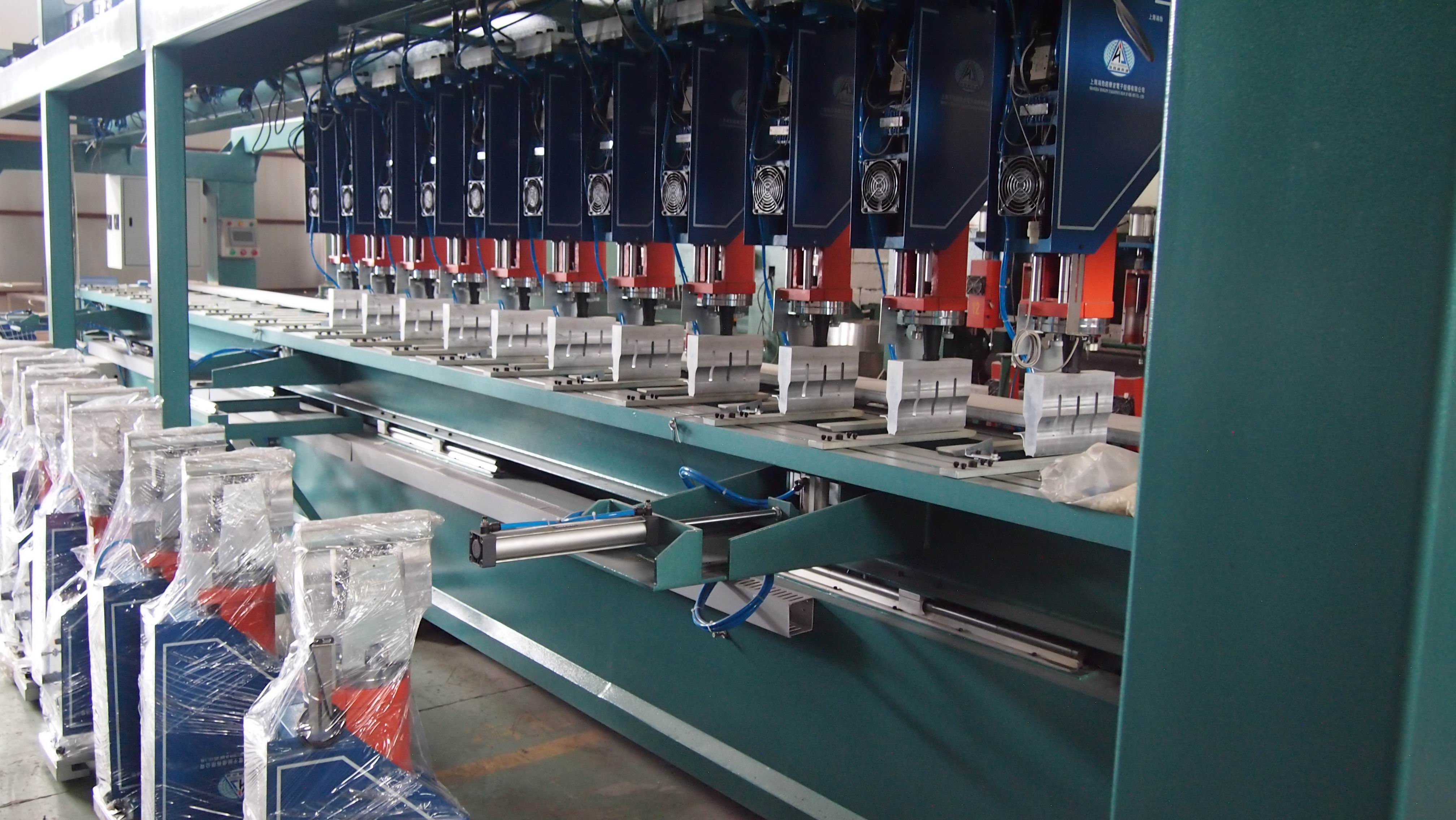 我廠制造土工格室生產(chǎn)線設(shè)備,是由多臺(tái)超聲波塑料焊接機(jī)組合而成 控制系統(tǒng)采用進(jìn)口