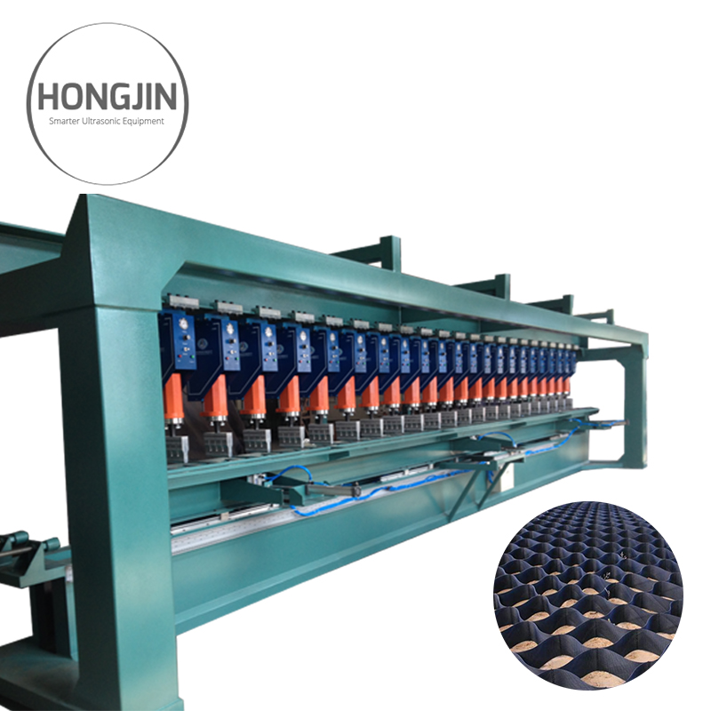 我公司制造土工格室生產(chǎn)線設(shè)備,是由多臺(tái)超聲波塑料焊接機(jī)組合而成采用進(jìn)口PLC控制具有如下先進(jìn)特點(diǎn):