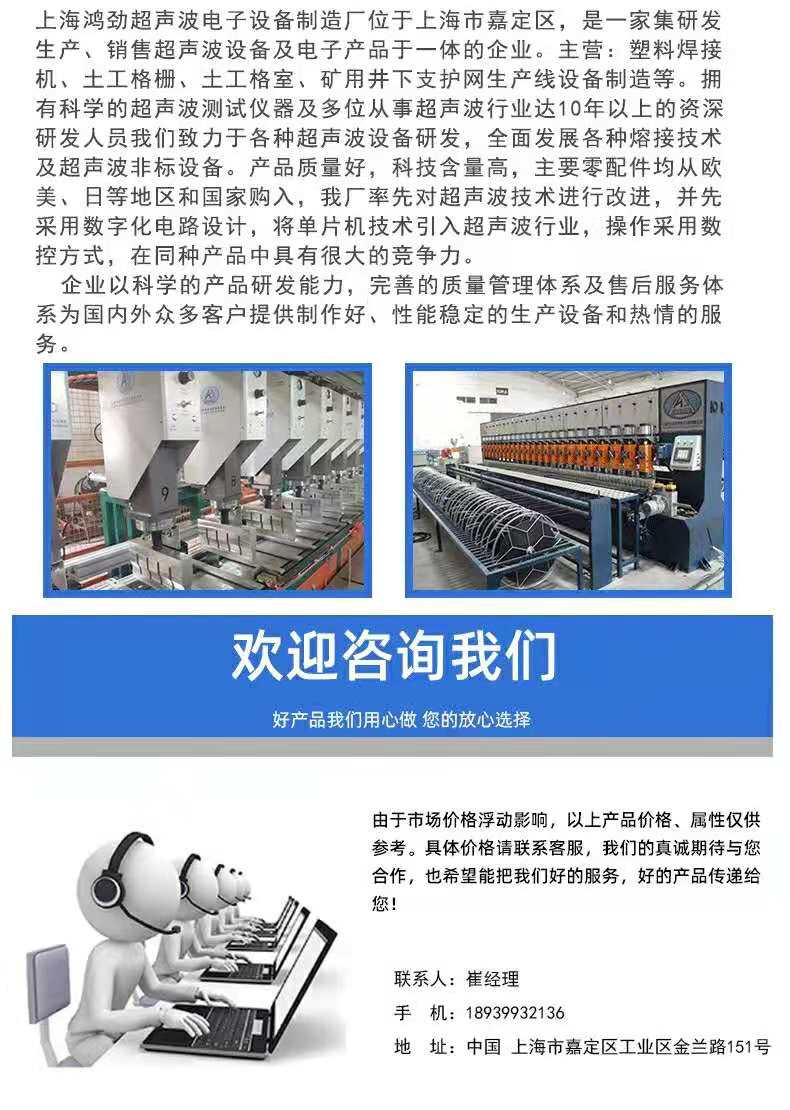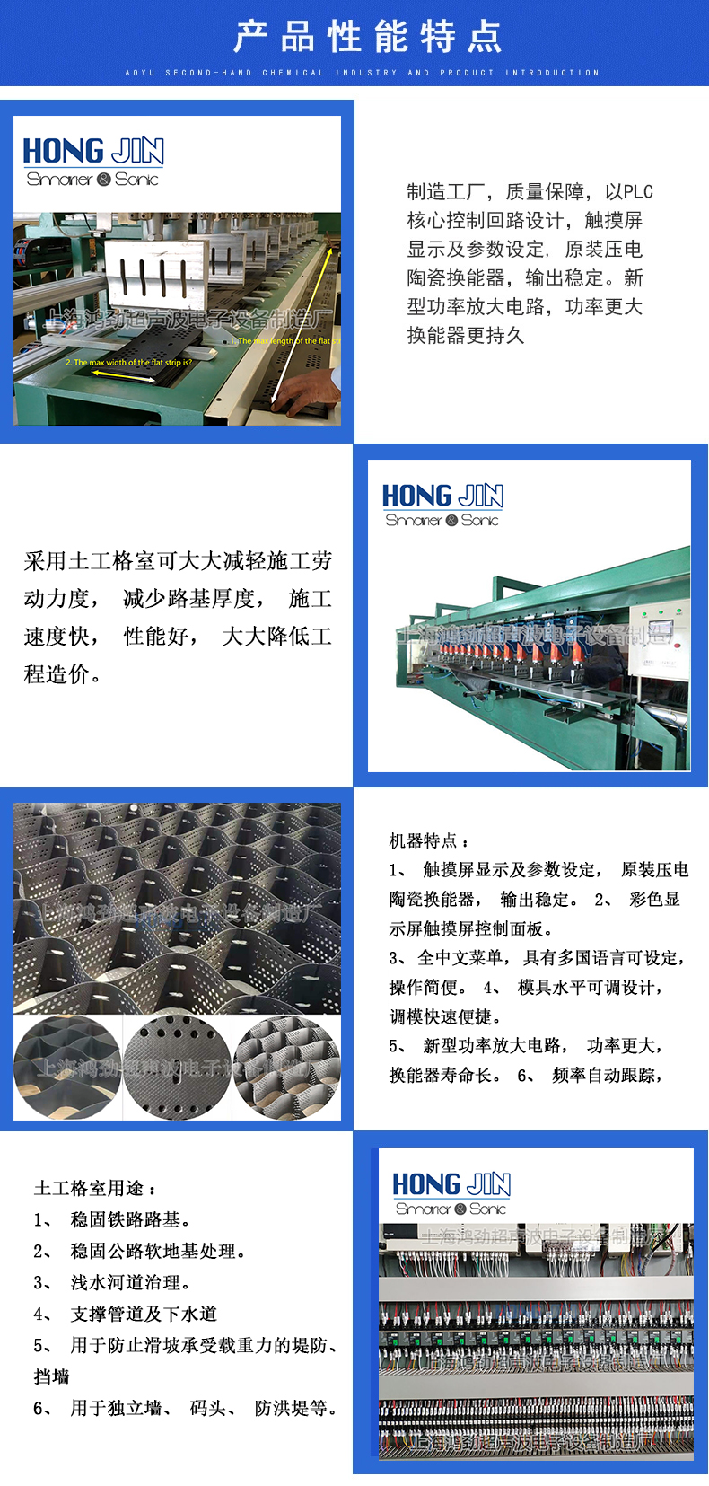 我公司制造土工格室生產(chǎn)線設(shè)備,是由多臺(tái)超聲波塑料焊接機(jī)組合而成采用進(jìn)口PLC控制具有如下先進(jìn)特點(diǎn):
